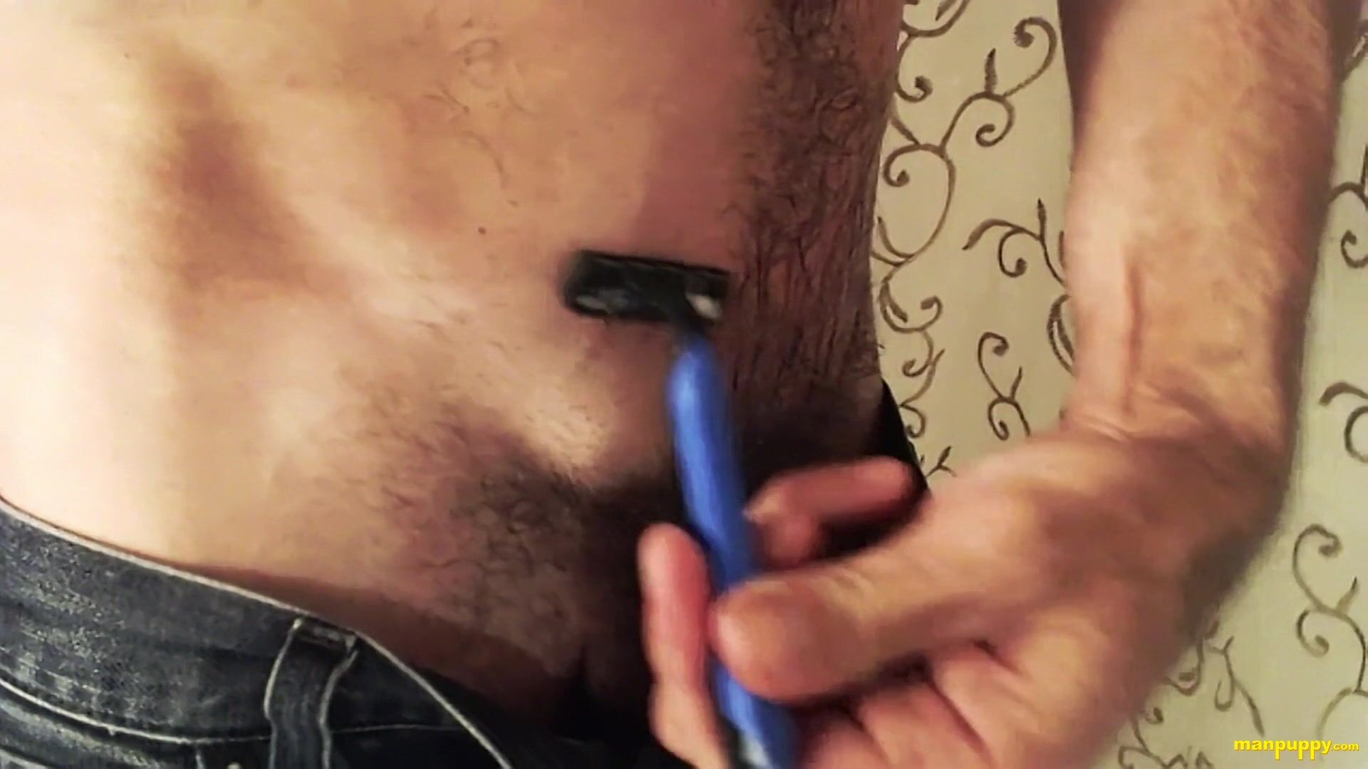 Any time can turn into a fun time, as Richard Lennox demonstrates! Watch Richard shave then stroke his hard cock!