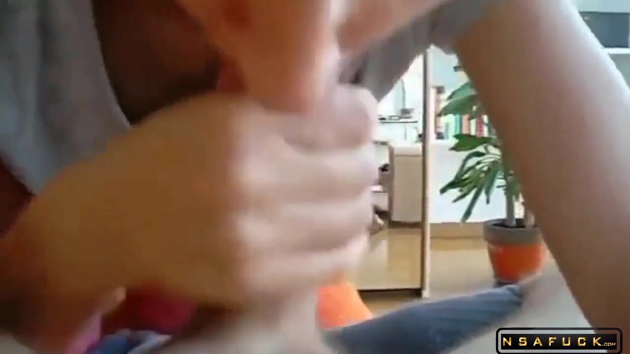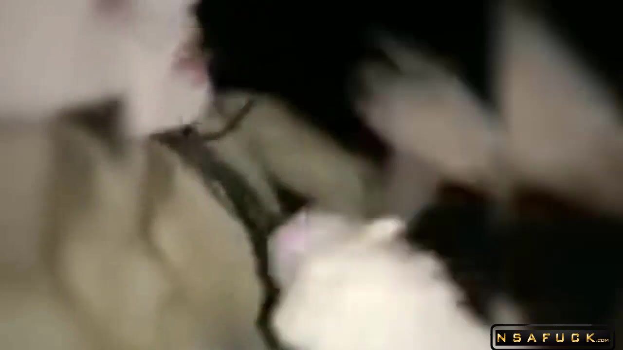She got her ass pounded hard by two cocks from behind and another guy watches from a nearby chair