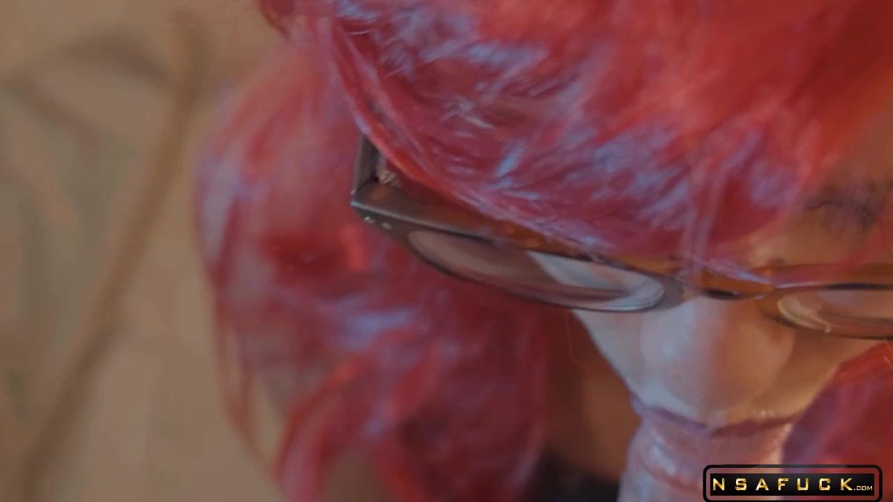 Sexy chick is flashing tiny red thong up skirt, and she has a beautiful mature cock, furry chest and that sexy mature man look