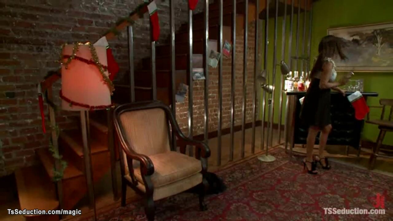 Shemale Carmen Moore accidentally hit mall cop Landon then brings him home where in bondage with sexy girlfriend Jessie Cox fucks him in threesome