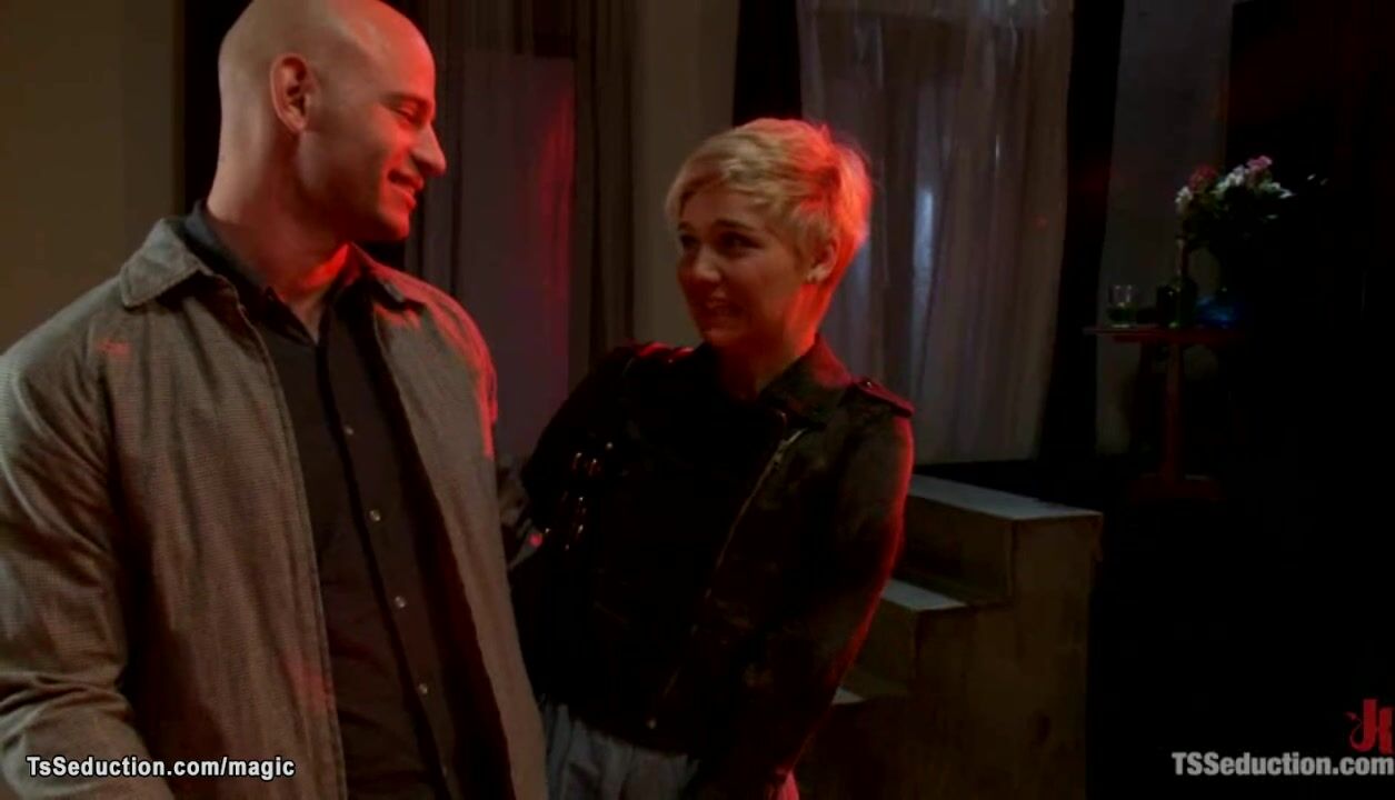 Horny couple Chloe Camilla and Patrick Rouge came to Red Light District where tall blonde shemale dominatrix Danni Daniels put them in place and rough fucked with huge cock