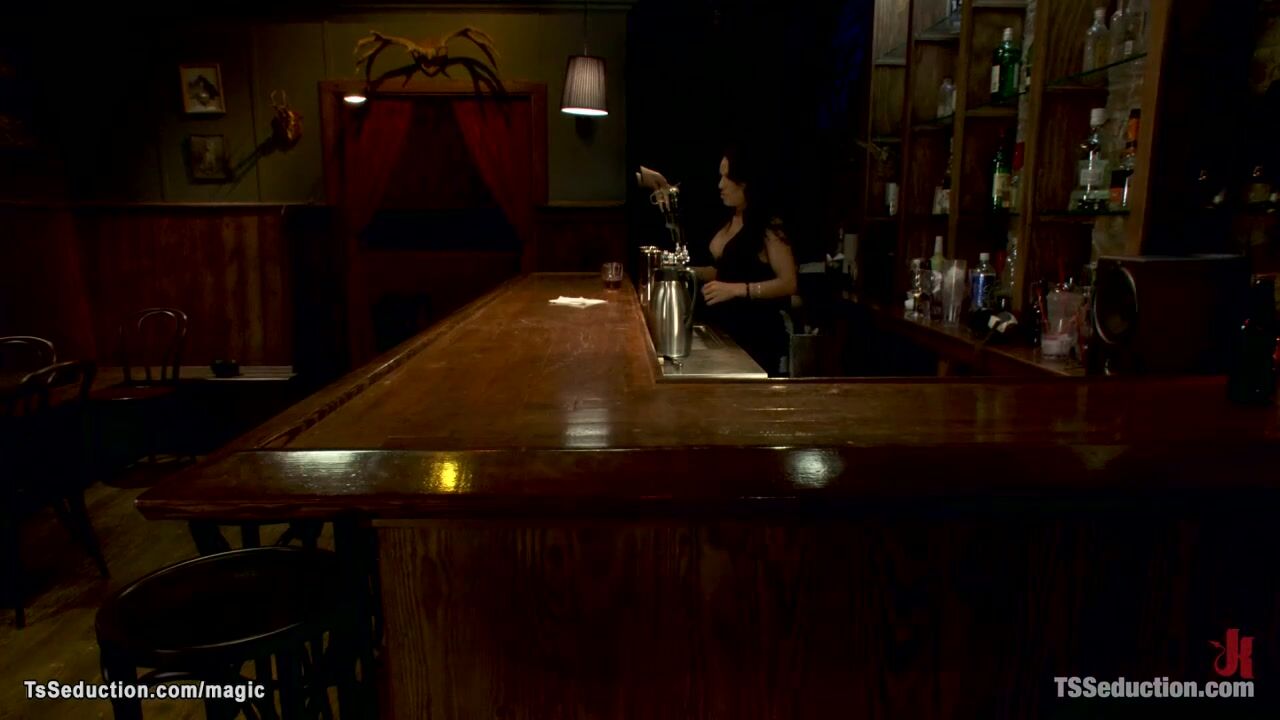 Busty shemale bartender fucking client