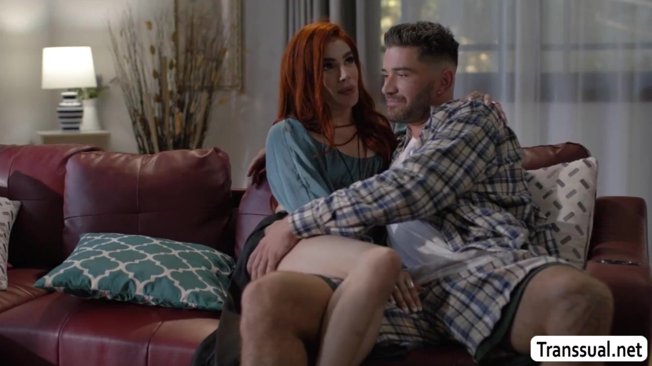 Slut Shemale brings her new boyfriend into her place and they start kissing each other on the couch.After that,she throats his hard big cock passionately.In return,the guy bareback fucks her tight wet ass so deep and hard.
