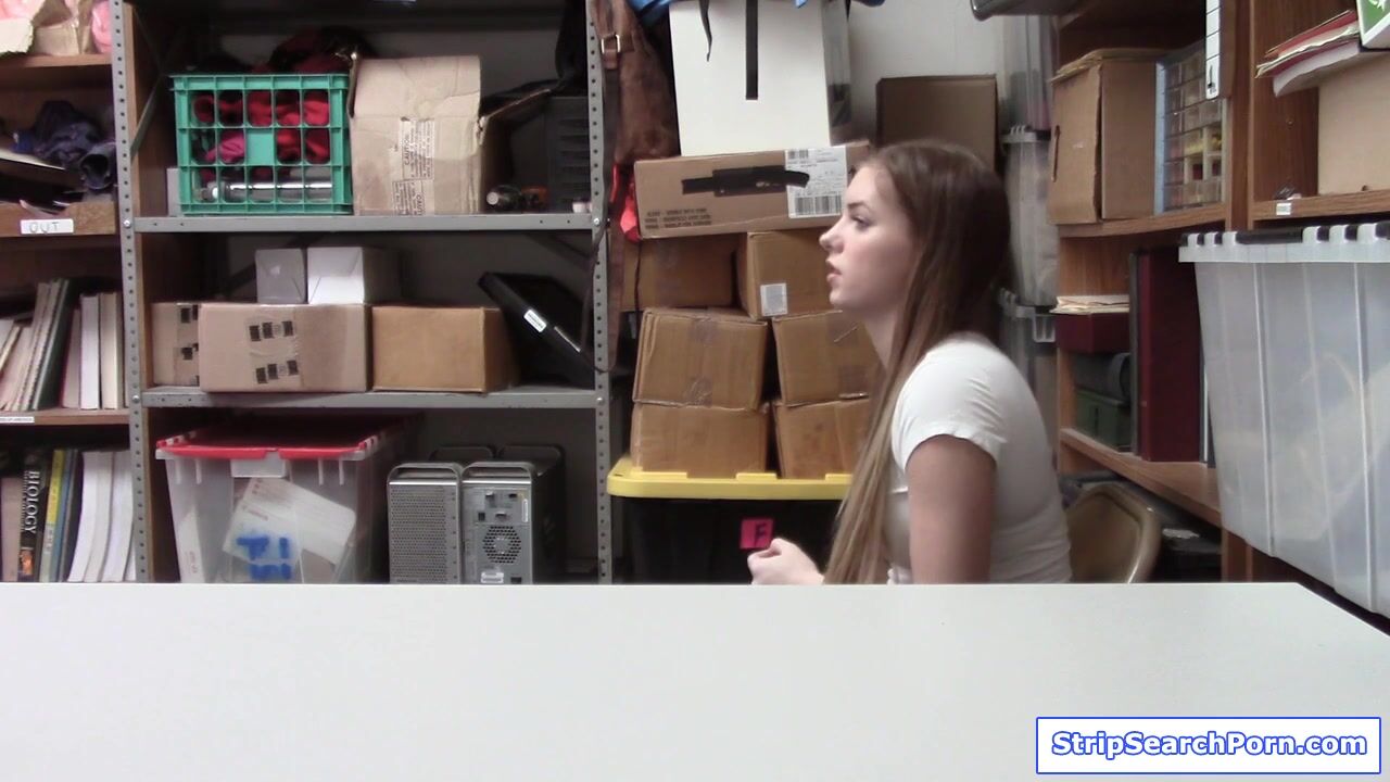 A teen gets caught with her modus returning cheap items using an expensive receipts.The security guard takes her to his office and conducts strip search.She cooperates and agrees to have sex to avoid cops.She blowjobs him then gets doggystyle fucked.