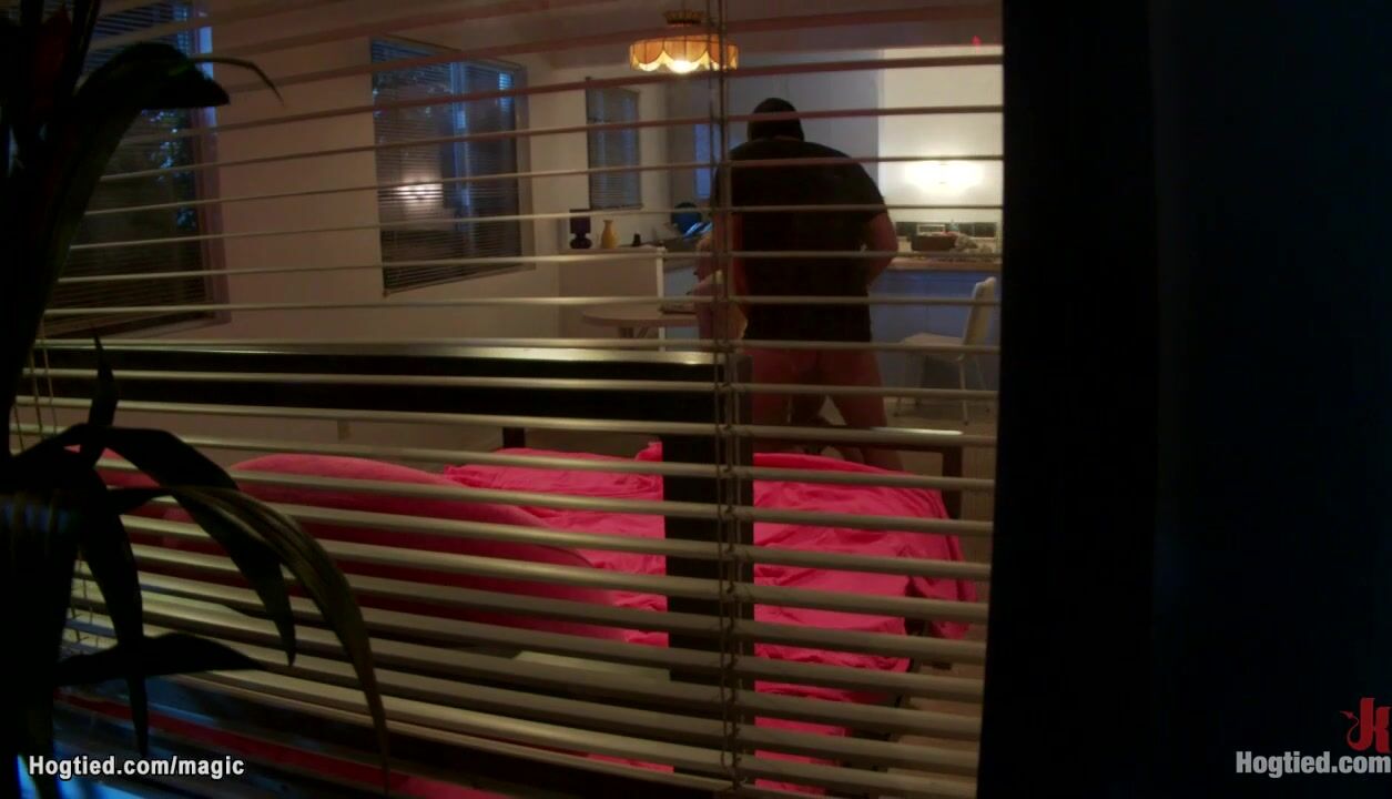 Big tits blonde student Kaylee Hilton is invided and bound in bed by big cock old masked master Mark Davis then rough pussy and mouth fucked