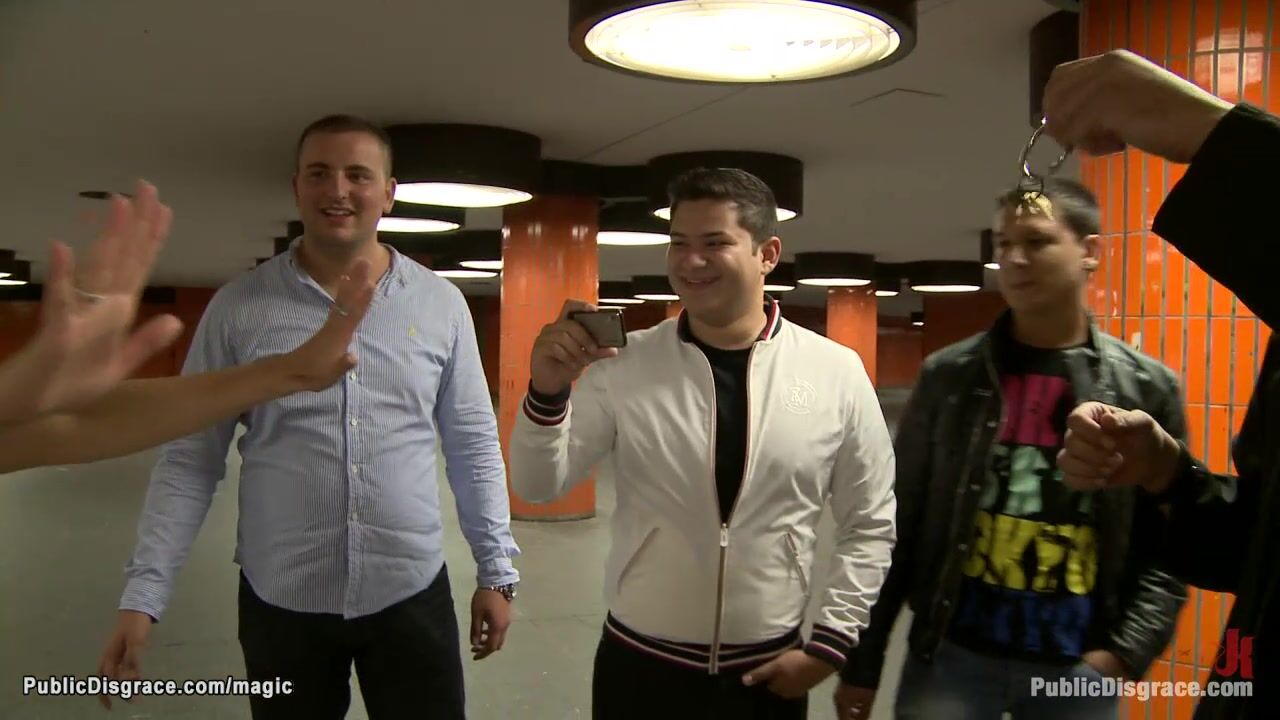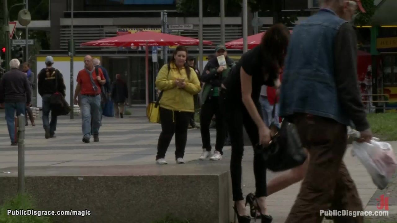 German blonde slut Uma Masome gets spanked by Princess Donna Dolore in public then head boxed and fucked by big cock Steve Holmes in subway till group fucked at night outdoors
