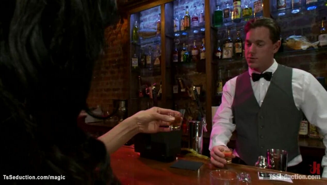 Big cock Asian shemale fucks bartender