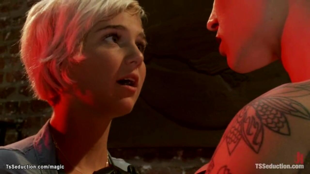 Tall tattooed big tits blonde shemale dominatrix Danni Daniels dominates and fucks kinky couple Chloe Camilla and Patrick Rouge In the Red Light District