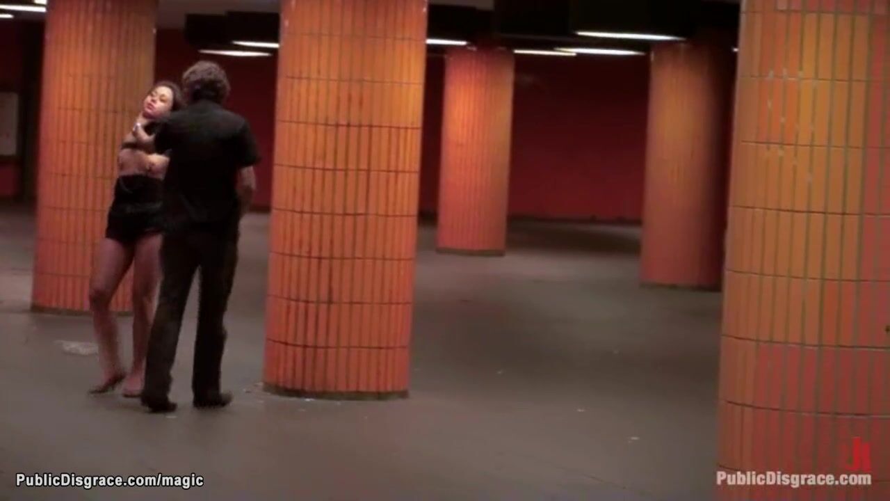 Babe hogtied and fucked in public