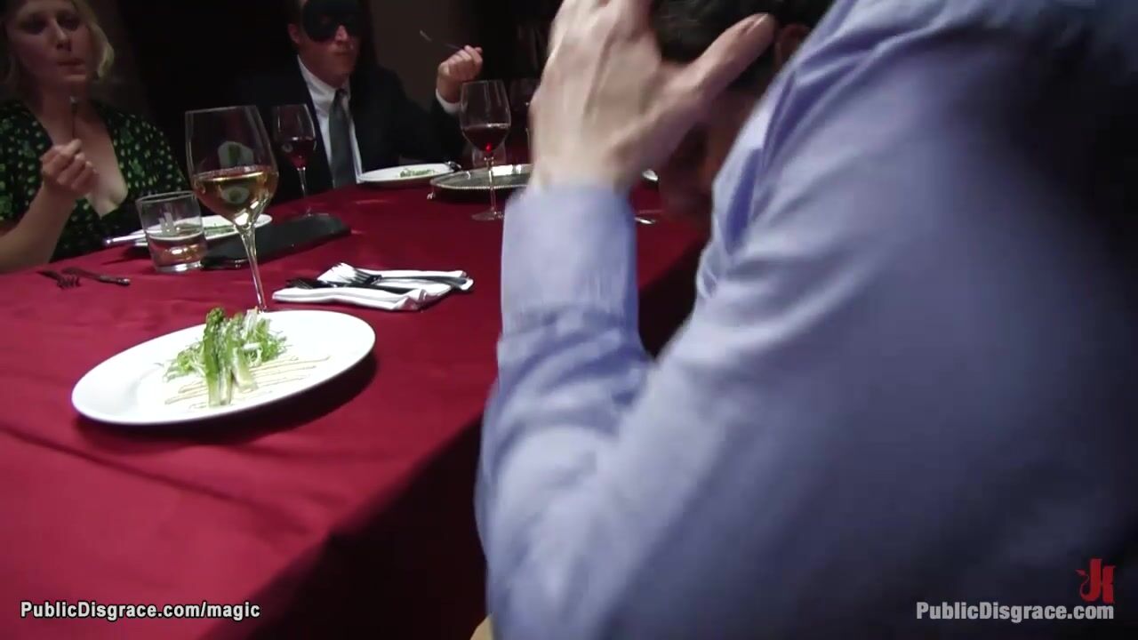 Big tits brunette babe Charley Chase is bound and laid on dinning table by host Princess Donna Dolore then bbc fucked at public party