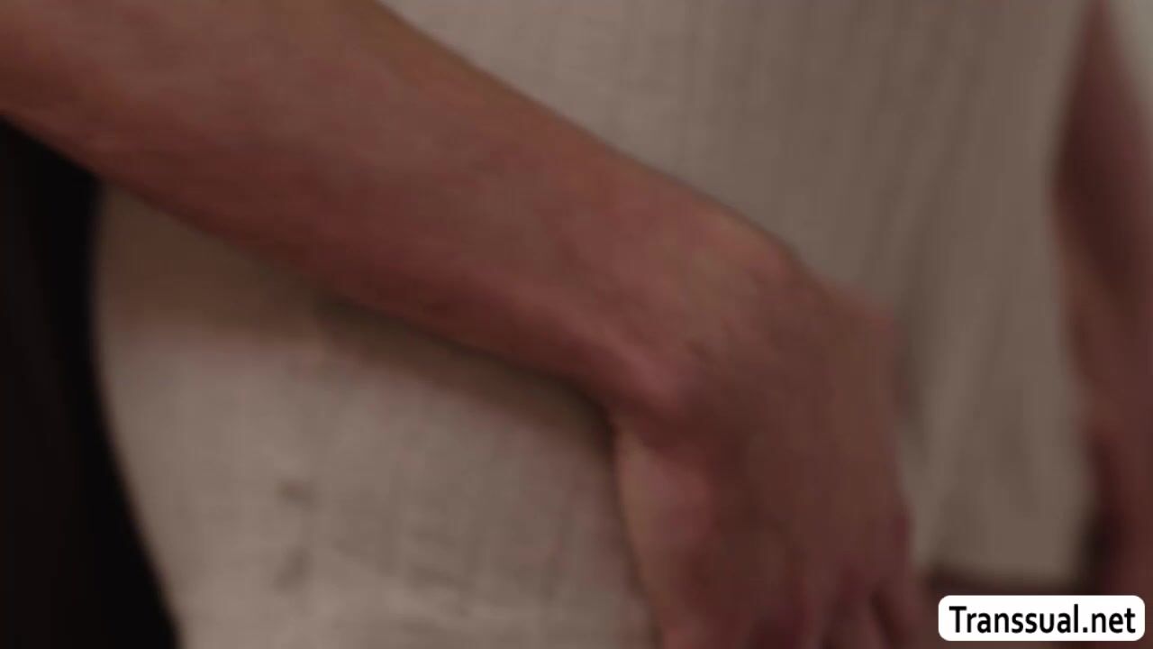 Busty Trans and her boyfriend are in the room measuring their new bed.After that,they get horny and start kissing each other.Next is,she throats the big cock of her boyfriend passionately.Next is,she then bareback fucks his tight ass so hard.