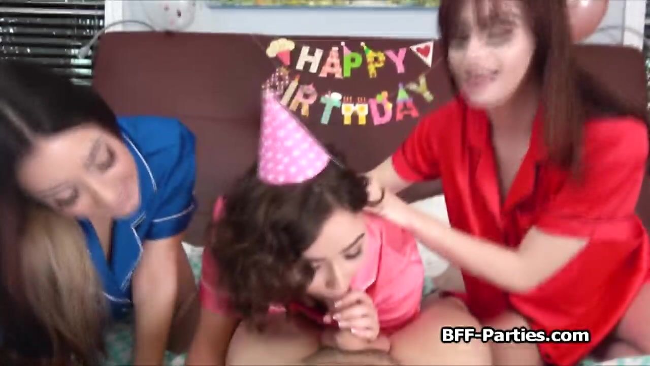 Surprise guest fucks bday party besties
