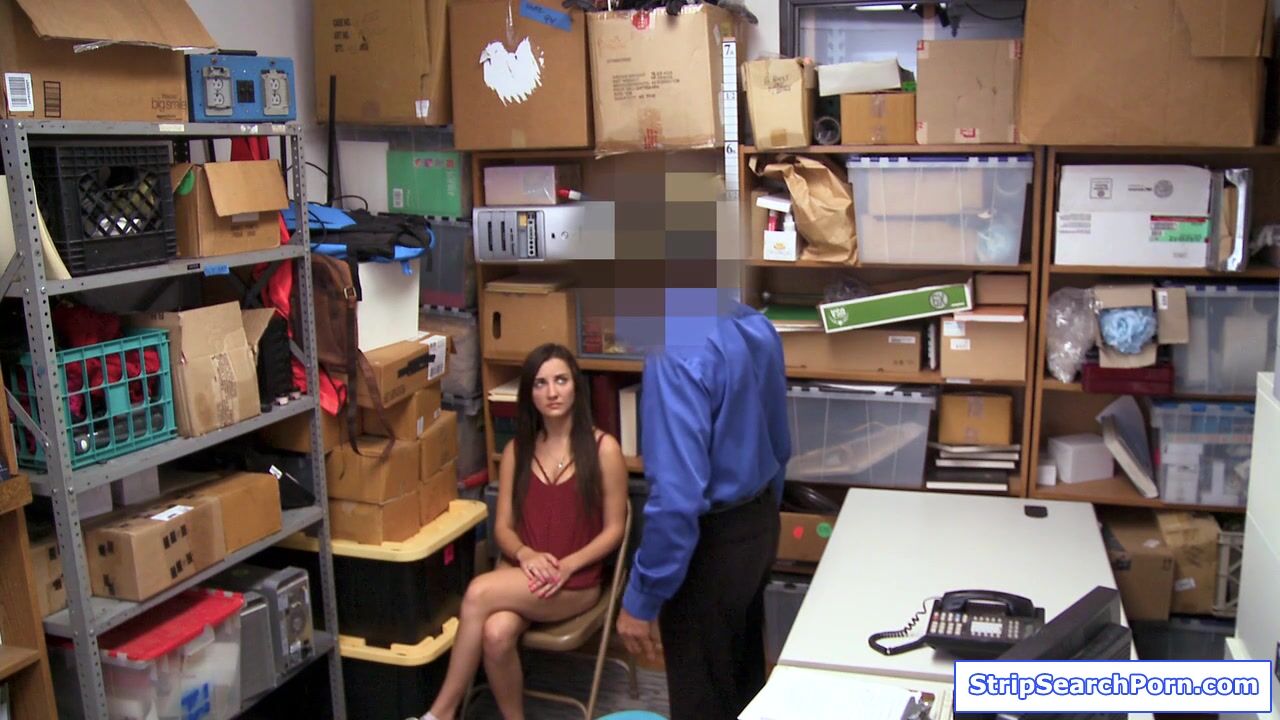 A loss prevention officer takes a teen shoplifter to his quarter and conducts strip search.The big tits brunette agrees do anything to void jail.She lets him caress her big boobs.Then she blowjobs his big cock and lets him fuck her shaved pussy.
