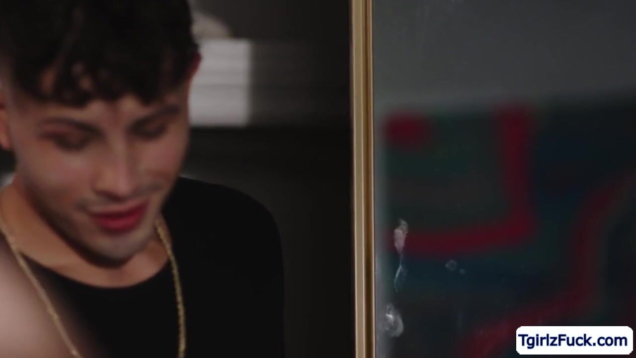 Small tits shemale Ariel Demure finds hunk stud sneaking while undressing so he joins in kissing and caressing big cocks until they trade deepthroat.