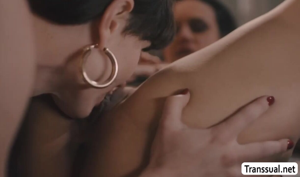 Gorgeous shemale Natalie Mars and her busty friend Penny Barber are on the couch kissing each other passionately.After that,Penny starts throating Natalies shecock and in return,Natalie licks and fucks the pussy of Penny so hard.