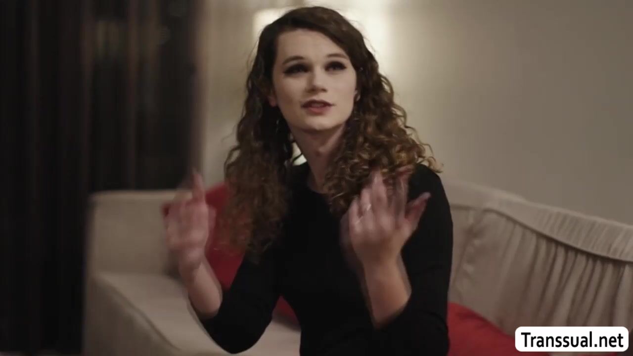 Pale shemale meets her new handsome stepdad.After that,they spend time to know each other.They start kissing each other and she throats her stepdads big cock and in return,her stepdad licks her ass first before he bareback fucks her ass.