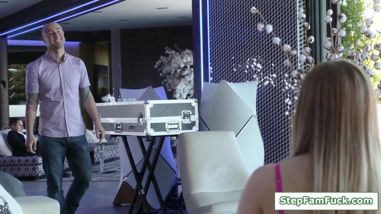 A blonde teen wants to have her stepbros car for a week but hes asking to make a sex video with him.She takes the offer,gets naked and lets him suck on her small tits.The stepsis blowjobs his big cock then lets him fuck her shaved pussy.