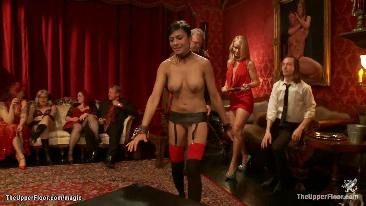 Blonde MILF Simone Sonay makes her service sluts Dahlia Sky and Alani Pi and Beretta James submit and fuck at bdsm orgy party in the Upper Floor