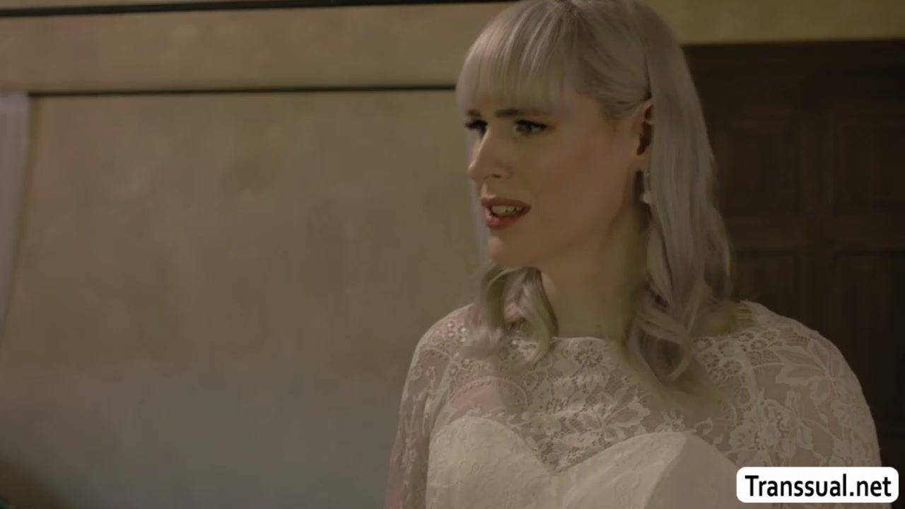 Slut bridesmaid fix the gown of her shemale bride and she then start kissing her passionately.After that,she goes down and throats her hard shecock.In return,shemale bride fucks her tight wet pussy so deep and hard.