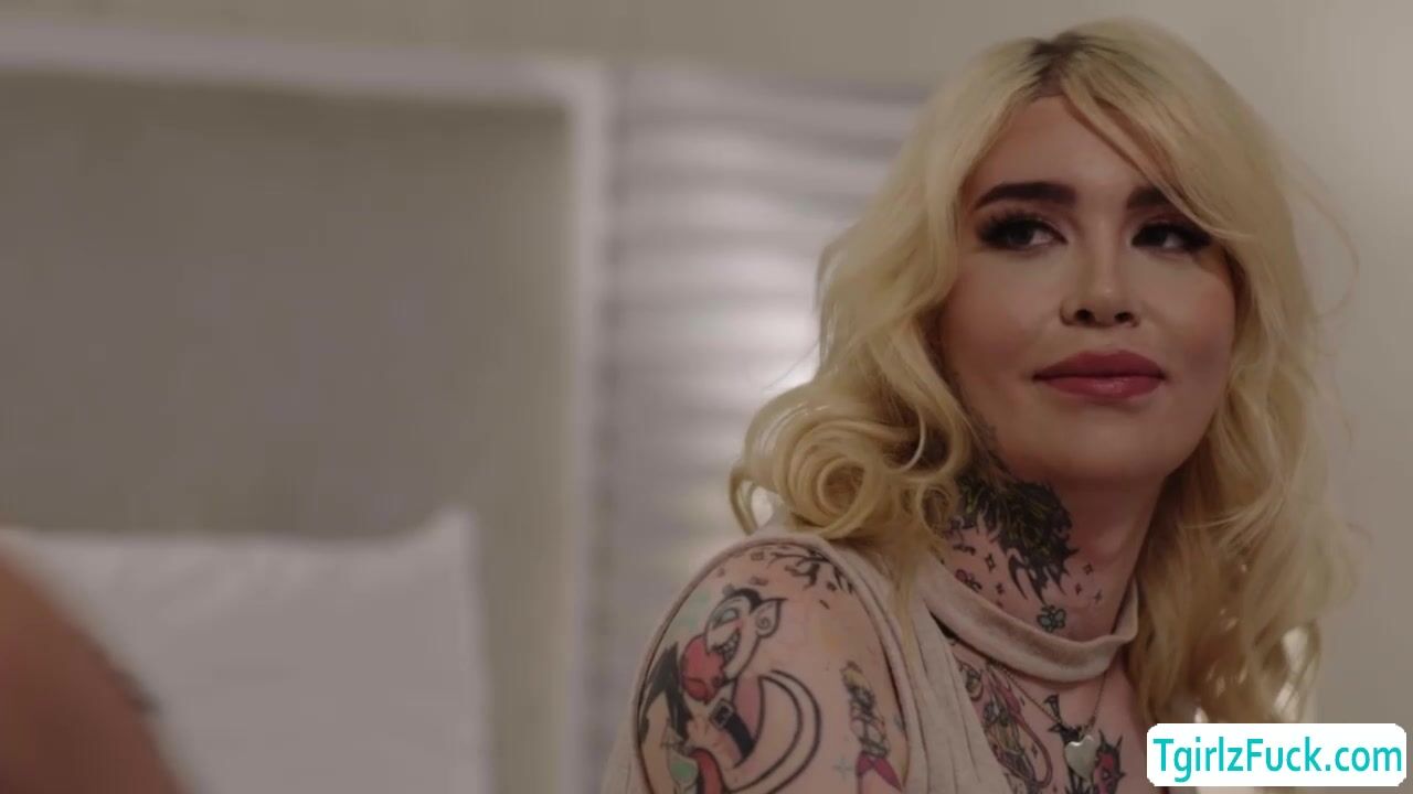 Busty blonde shemale Gracie Jane anal barbacks dudes big ass