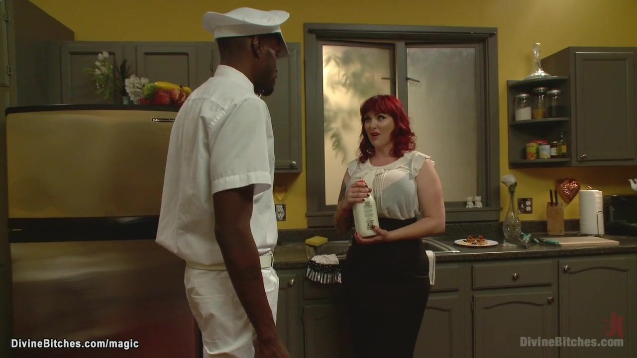 Huge boobs MILF redhead wife Mz Berlin makes cuckold Jimmy Bullet sucking big black cock to milk man Jason Brown then fucks bbc in front of him