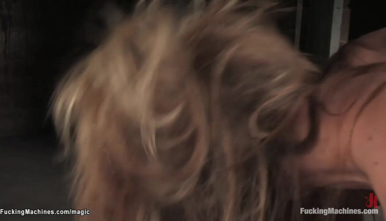 Flexible blonde babe fucking machines
