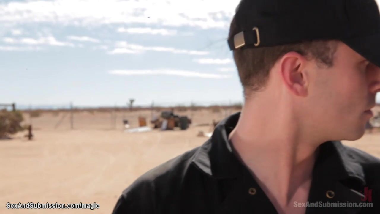 Phony sheriff James Deen arrests two hot students Casey Calvert and Lyla Storm in a desert road and then binds and anal fucks them with huge cock