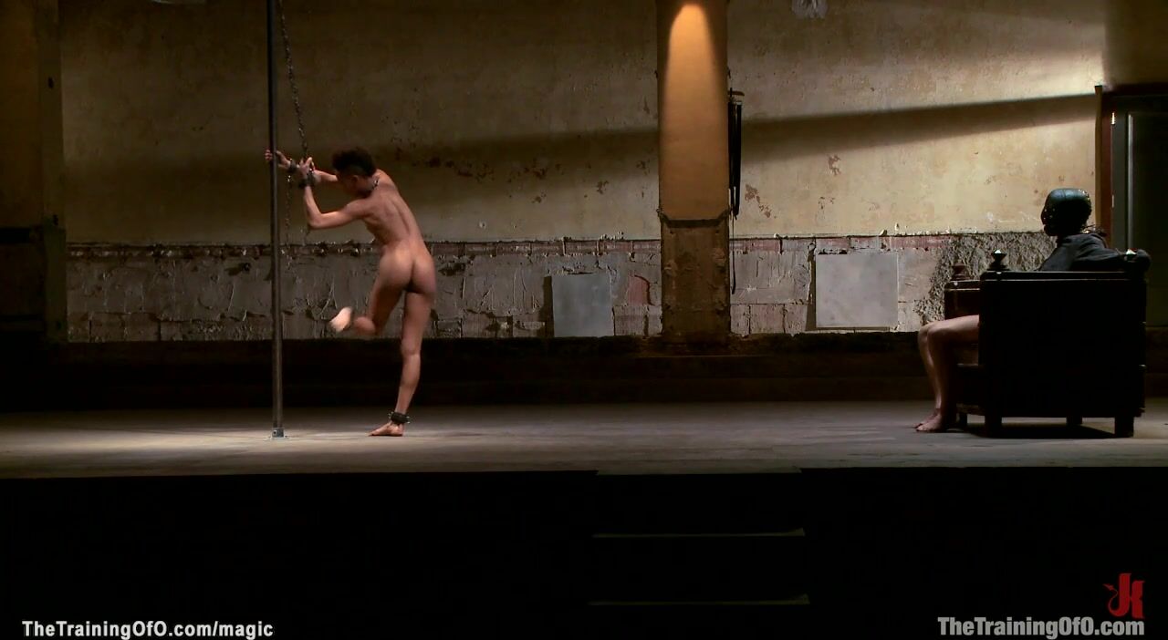 Small tits tight bodied ebony slave trainee Nikki Darling is bound in web of zippers with heavy buckets in hands and gets hard whipped by master James Mogul