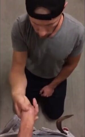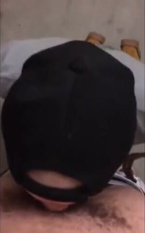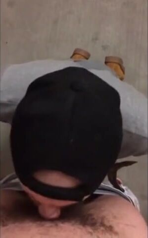 Guy takes a massive dick in his throat in a stairwell.