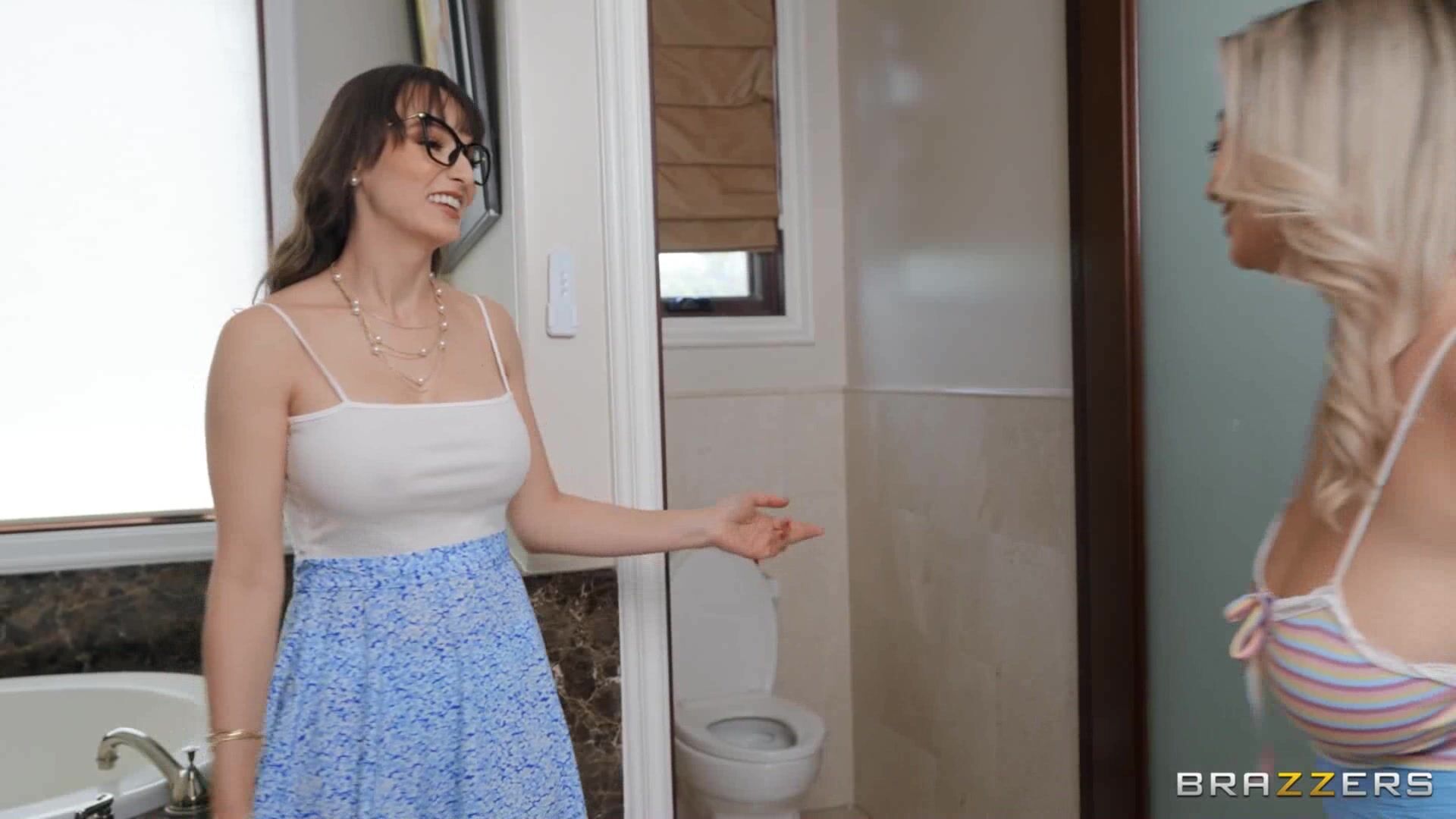 Busty tgirl Aspen Brooks steps out mirror and fucks redhead