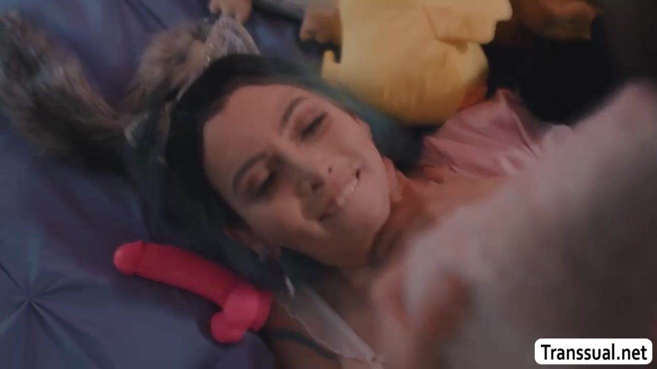 Jolly shemale lets guy neighbor toyed and analed her ass