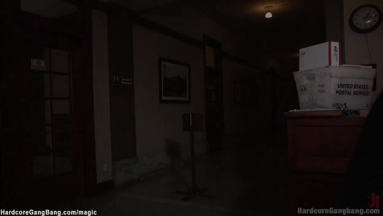 Natural huge boobs brunette babe Arabelle Raphael with tattoos all over body gets anal gang banged and interracial double penetration fucked in the gym