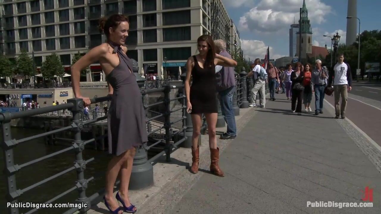 Hot brunette German babe Black Lady vibrated with remote controlled sex toy by lezdom Princess Donna Dolore in public streets then fucked in subway by big cock Tommy Pistol