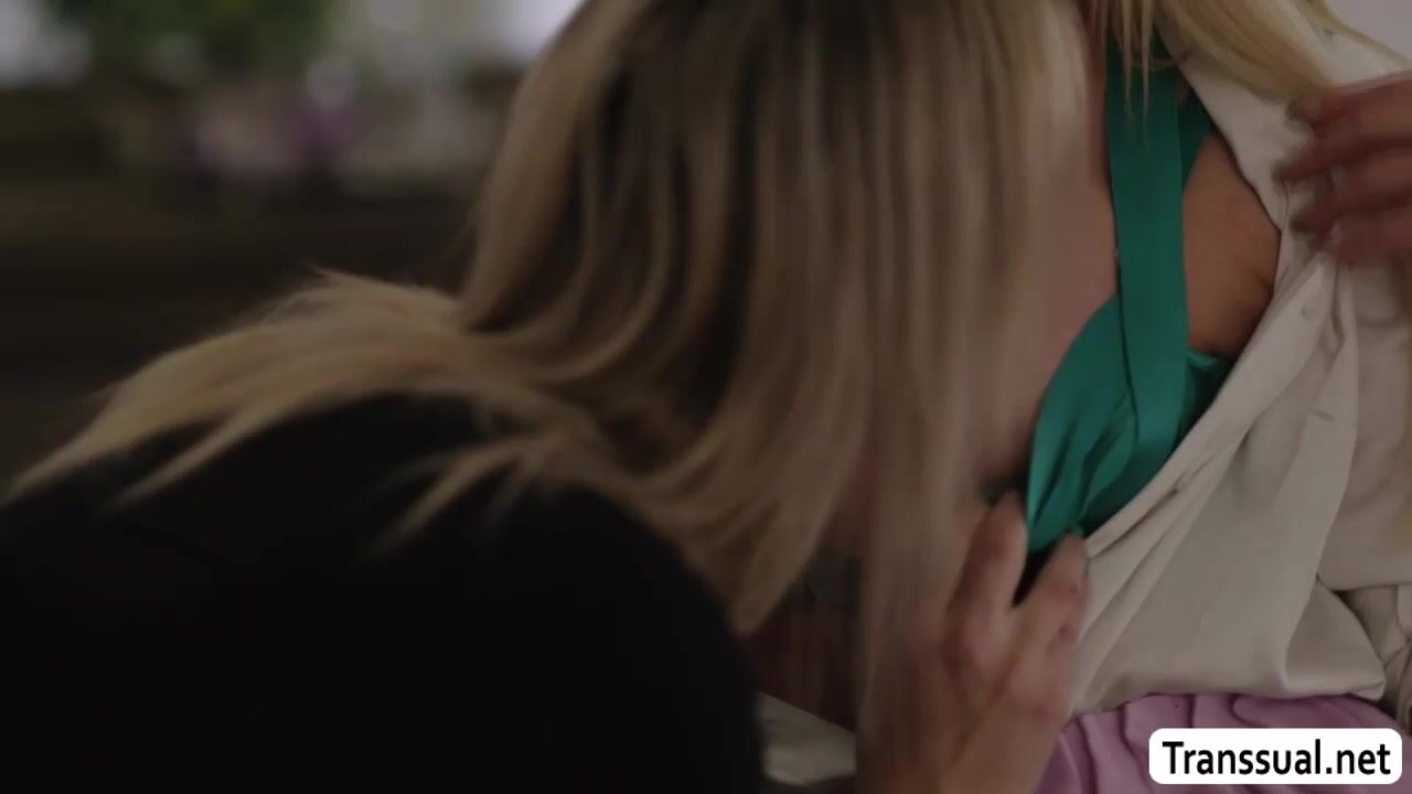 Chubby house agent tours her shemale client into the house masters bedroom.After that,they get horny and start kissing each other over there.Next is,she lets her TS client lick her pussy first before she lets her fuck it so deep and hard.