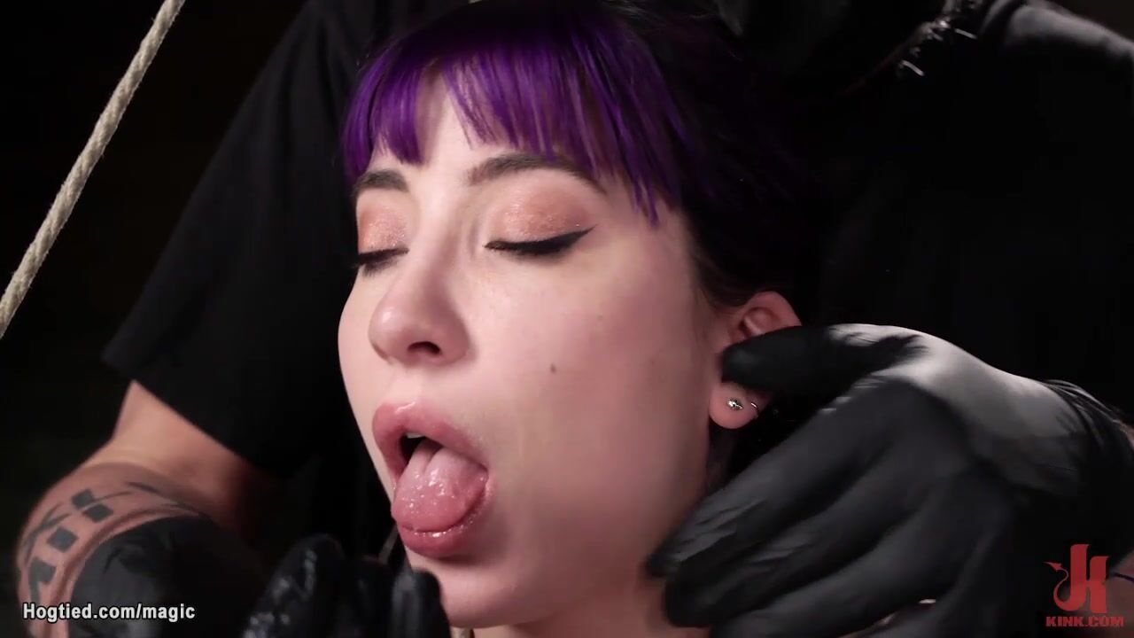 Petite small tits tattooed slave Charlotte Sartre is bound by rope to wooden beam then shaved pussy rubbed and finger fucked by master The Pope on hogtied