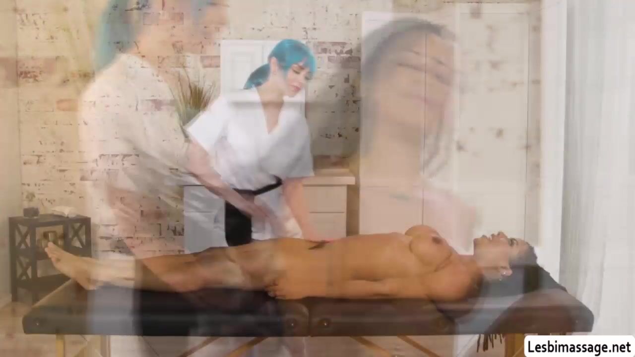 Black bride to be is in the massage parlor try to be relaxed before her big wedding day.She starts getting naked and lets the masseuse massage her body.After that,they get horny and start kissing each other and then lick their wet pussies so had.