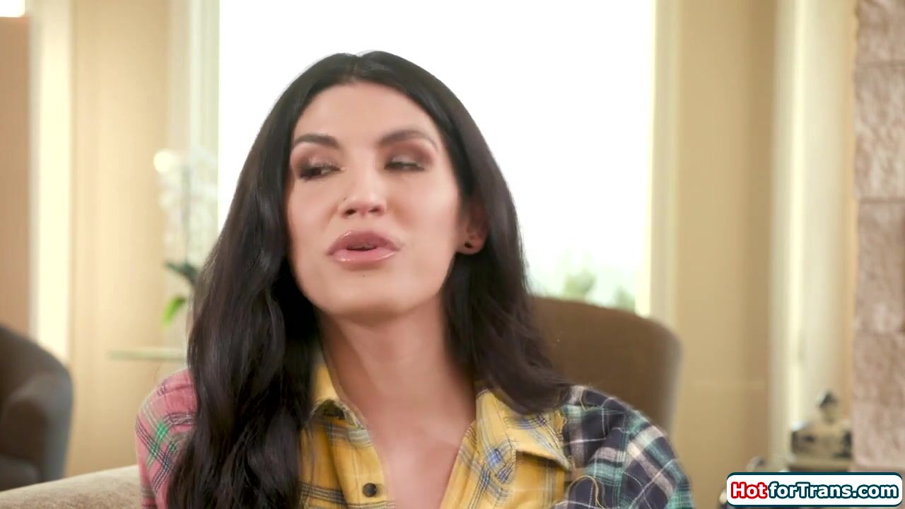 Tgirl babysitter Zariah Aura kisses her new boss before deepthroating his big cock.The small tits shemale takes out her tranny cock and gets a blowjob.The ts grabs both dicks and handjobs them.On her back the brunette trans is anal barebacked
