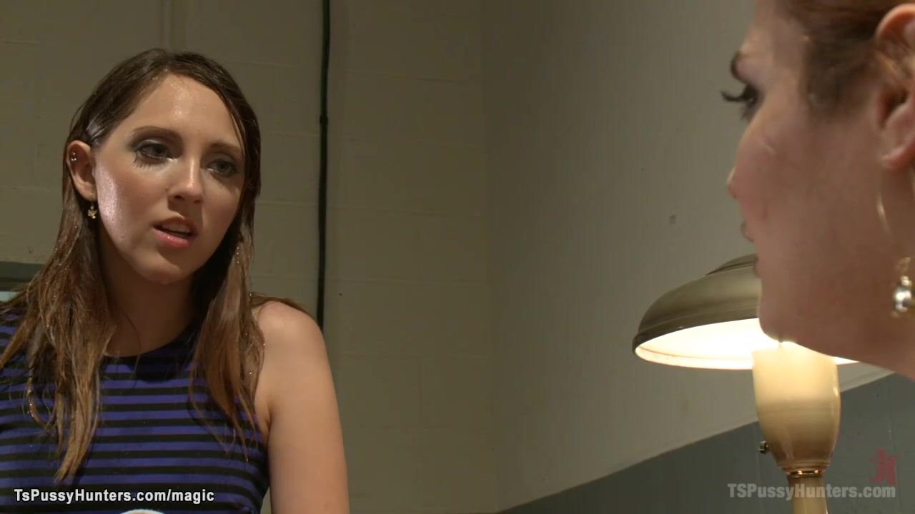 Spooked guest Nickey Huntsman complaints to shemale hotel manager Tiffany Starr and then she licks her pussy and fucks her with big cock in her room