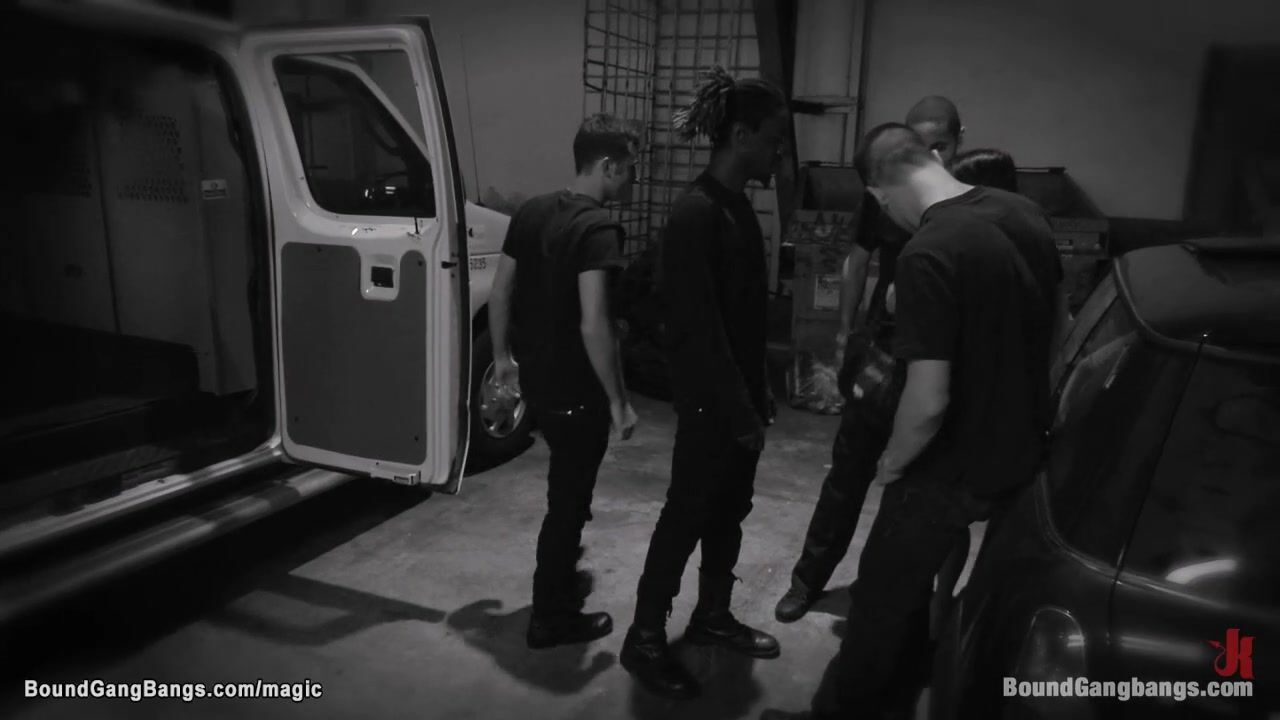 Sexy brunette babe Jade Indica in her fantasy is dragged in van and drove in secret place where double penetration fucked by huge cocks