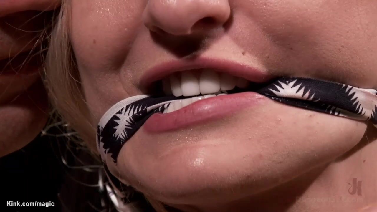 Blonde slave Natasha Starr with bound legs and arms together gets pussy rough fucked then in suspension banged by big cock tattooed master Derrick Pierce