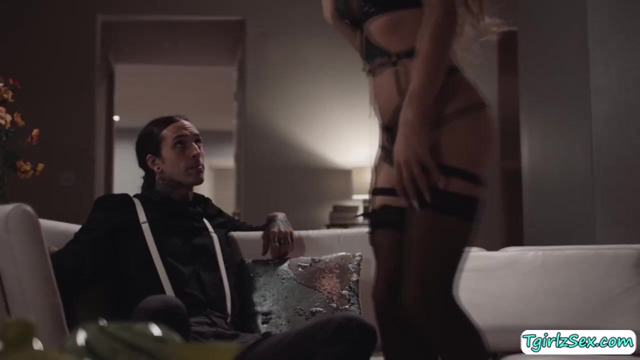 Tall and brunette tranny babe Jade Venus joins tatooed starighy guy Ruckus in the couch with her hands running towards his big hard cock leaning near to kiss. Slowly, the big tits shemale bows down to deepthroat blowjob his dick and stretch ass for anal bareback.