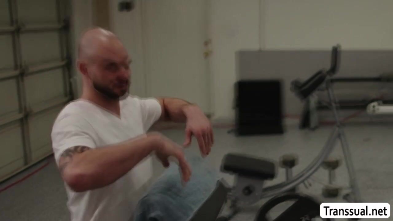 Muscle man is working out with super hot shemale.After that,he cant resist her hotness so he starts licking her ass to makes it wet and he then bareback fucks it so hard.Next is,he lets her throat his dick and puts it inside her ass again.