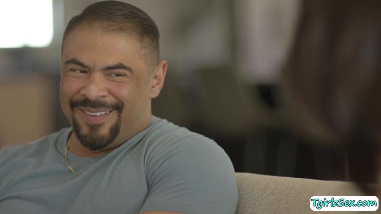 Busty shemale Ember Fiera welcomes masculine straight guy Draven Navarro with tender kisses and her hands towards his big hard cock to deephroat blowjob. The brunette transexual stretches his big asshole to rimjob and hardcore anal bareback missionary.