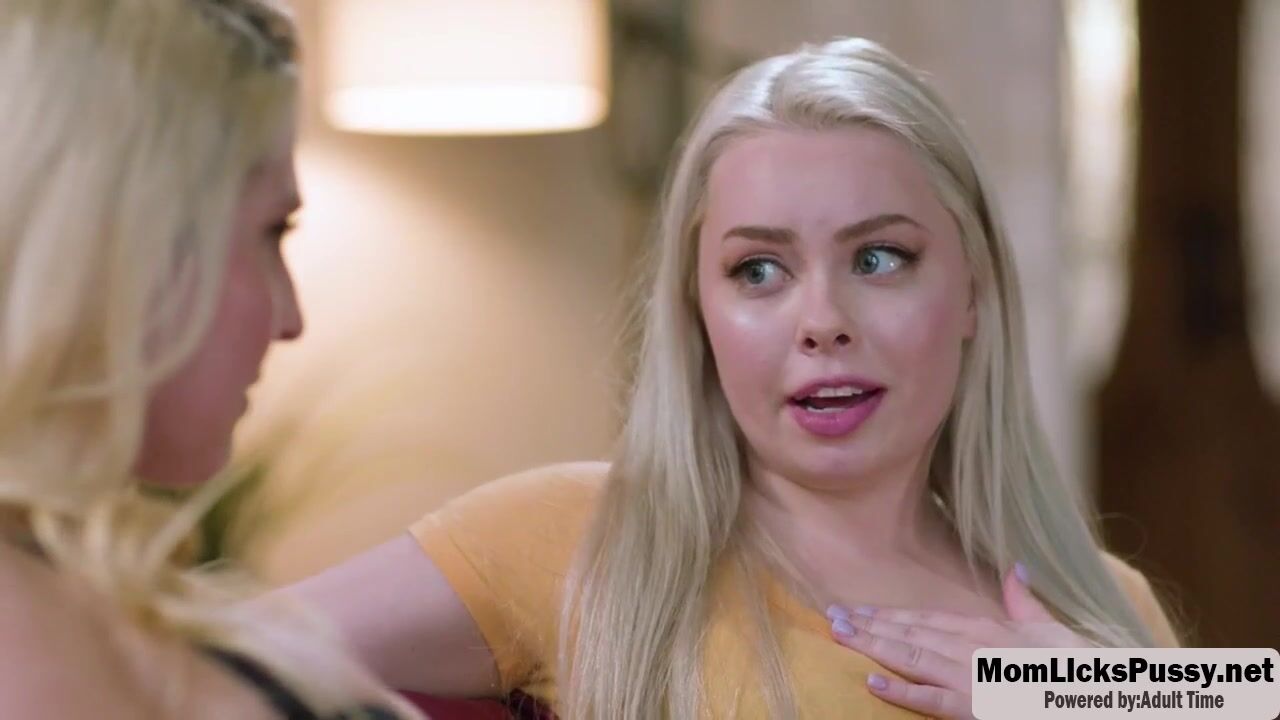 Busty teen seduces her MILF stepmom to have sex again with her.She starts teasing her and then they start kissing each other passionately on the couch.After that,they suck their tits and then they lick their wet pussies so hard.