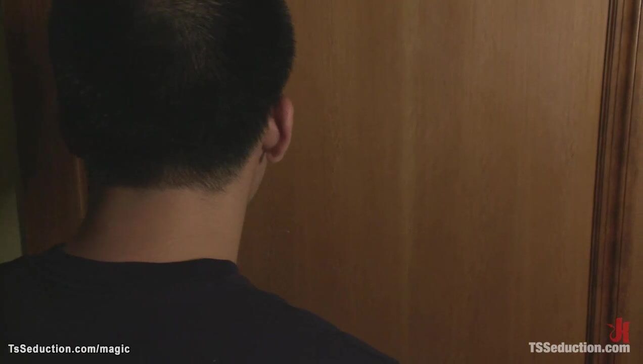 Big tits brunette shemale college babe TS Doll fucks with roommates Mike and Vince Ferelli then gets gang bang fucked in dorm room