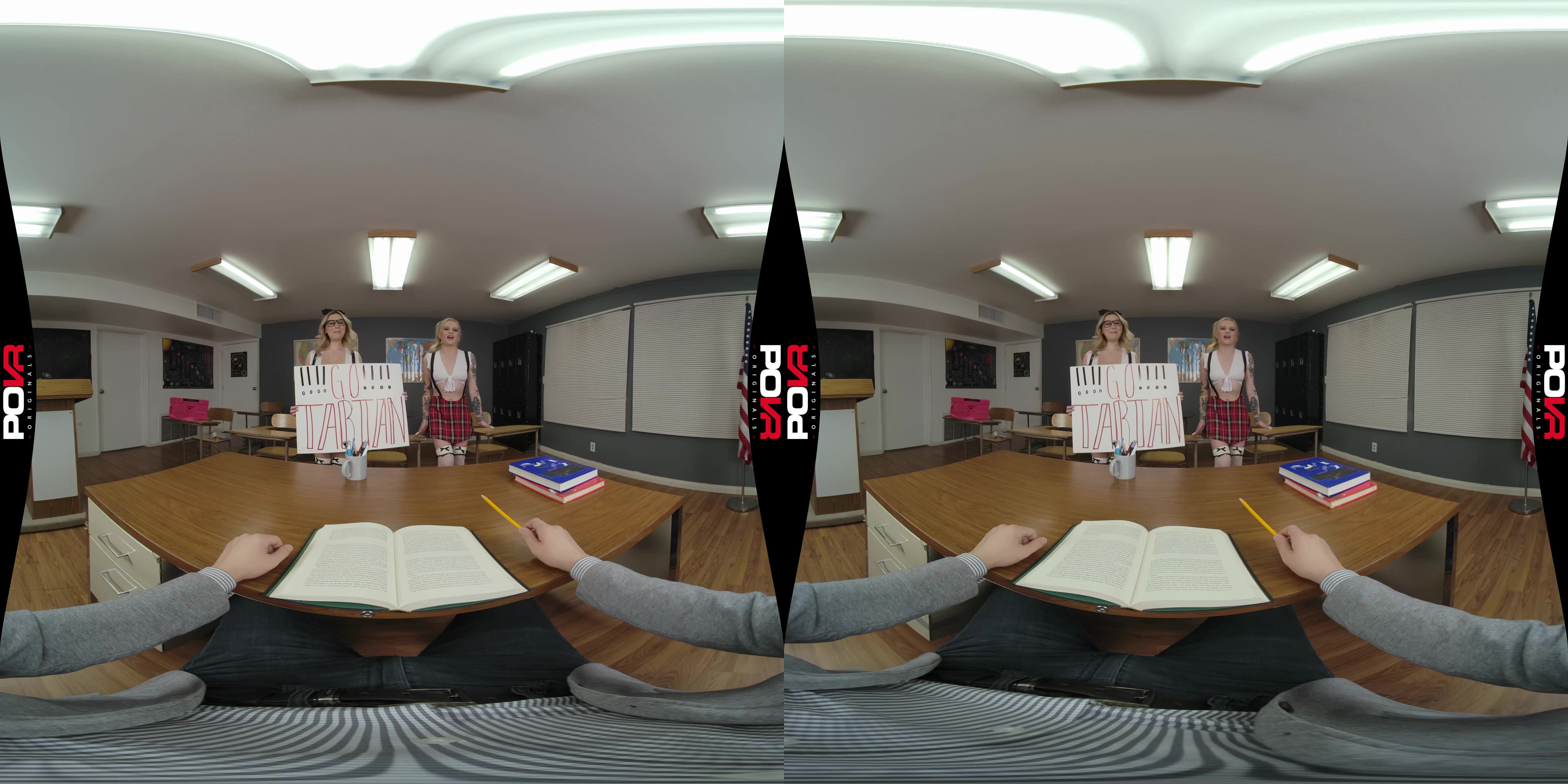 Show your school spirit with Chloe Surreal and Paris White! These cuties in plaid skirts are getting ready for the big pep rally and you give them a quiet classroom to work it all out.