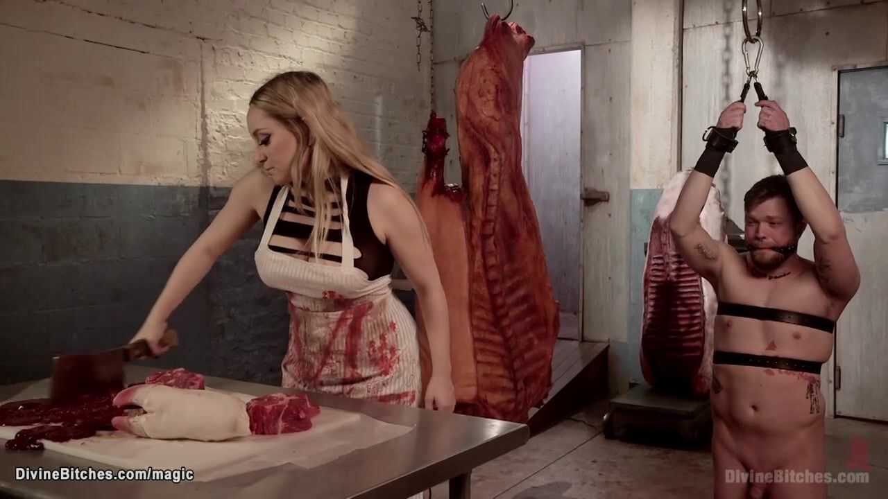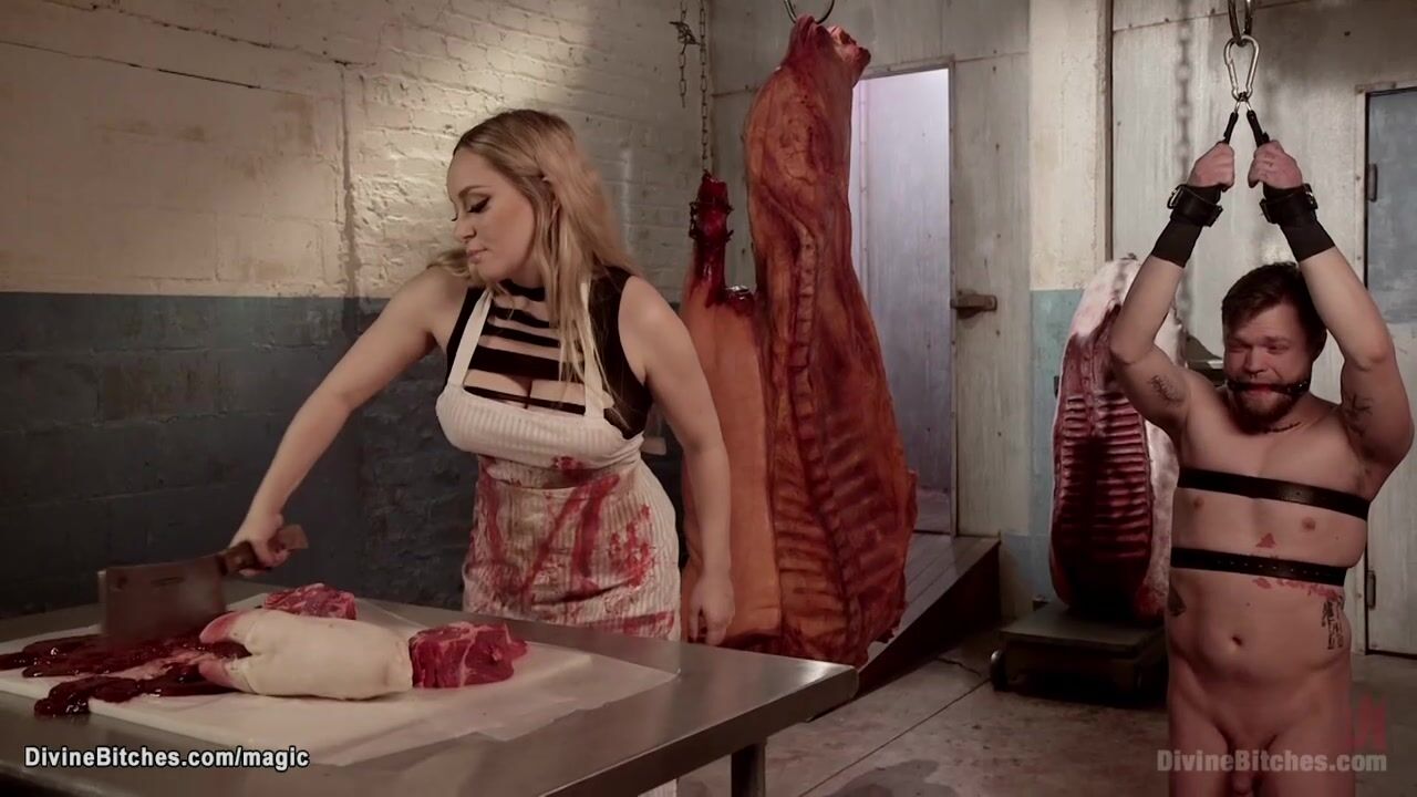 Meat delivery man bound and pegged