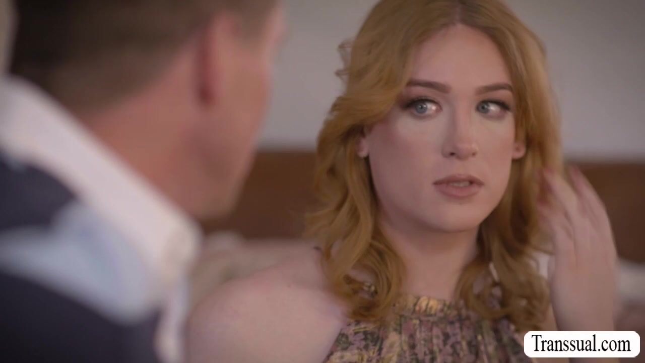 Stepbrother hears his shemale stepsister talking on her phone so he decide to peak on her door.After that,he enters and they start kissing each other.Next is,he throats her tranny cock passionately and lets her fuck his ass so hard.