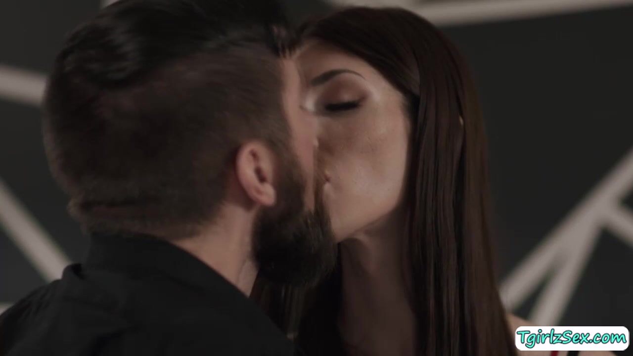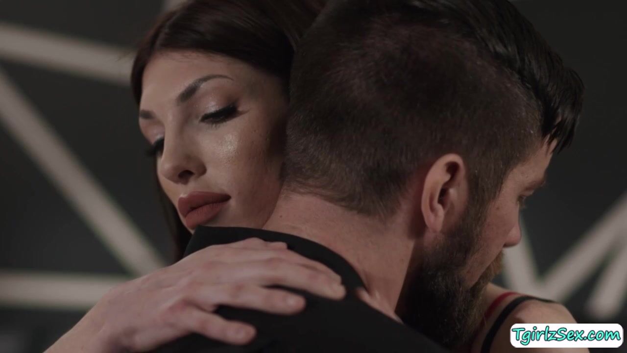 Transexual beauty Ava Holt flirts with handsome straight guy Chris Epic stripteasing her fishnet lingerie. The small tits shemale bows down to deepthroat blowjob his big cock while masturbating stretches her big ass to rimjob and his dick up for hardcore anal bareback.
