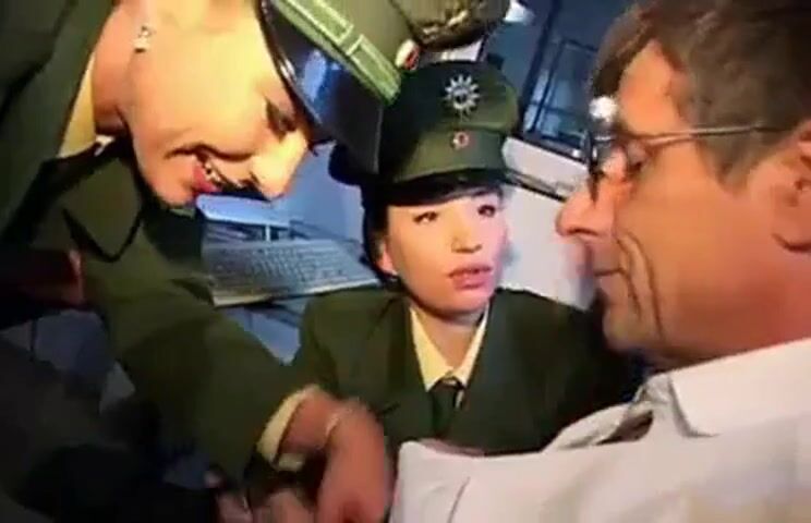 Two german police hotties in uniform taking care of a lucky boss.